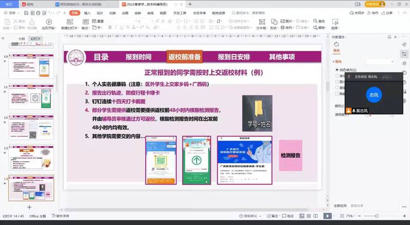 本次返校前线上会议,帮助学生明确了返校要求,梳理了各项返校流程,为贯彻落实疫情防控期间的安全复学工作做了充分准备,为进一步做好春季学期学生返校工作、校园防疫工作提供有力的保障。春暖花开,师大等你。