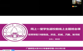 为确保疫情防控工作扎实开展,保证学院学生安全有序返校,2月20-24日,职业技术师范学院各年级辅导员组织召开了“同上一堂返校前线上主题班会课”,通过腾讯会议就开学返校的具体要求做出安排部署。