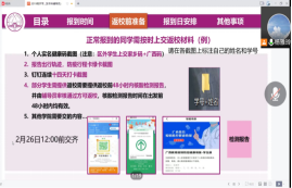 本次返校前线上主题班会课对返校事宜做出详细部署,是疫情防控常态化背景下做好学生有序返校工作的重要安排,通过各项工作的细致提醒,相信同学们都能提高安全意识,以身作则、平安返校,以青春的朝气开启新学期的学习生活。
