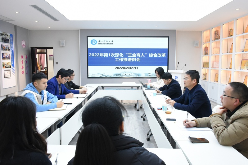 2月27日,政管学院在雁山校区行政北楼474会议室召开2022年第1次深化“三全育人”综合改革工作推进例会。会议由学院党委主要负责人主持,学院行政主要负责人、学院党委相关负责人出席,学院办公室主任、团委书记、各党支部书记、专职组织员、辅导员、教学秘书参会。