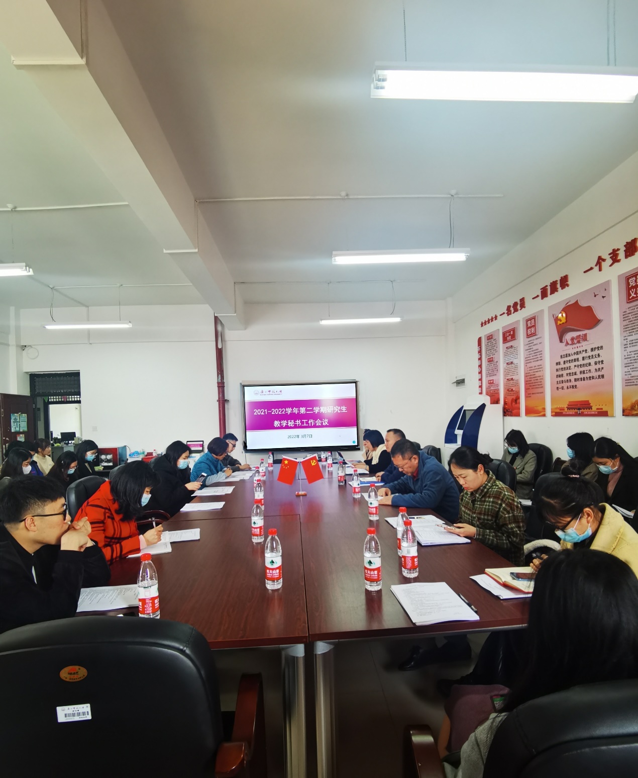 3月7日,我校2021-2022学年第二学期研究生教学秘书工作会议在雁山校区起文楼546会议室召开。研究生院负责人、相关负责人,研究生院培养办、学位办管理干部及各学院(部)研究生教学秘书参加了会议。会议分两个阶段进行。