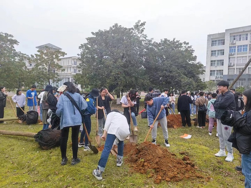 植厚文明美育底蕴,树育强国栋梁之才。3月12日是第44个植树节,为引导广大青年学生积极投身生态文明实践,关心和参与生态环境保护,树立建设美丽校园意识,音乐学院开展“喜迎二十大,共植青年林”植树活动。学院党委相关负责人、全体专兼职辅导员与各年级学生共同参加本次活动。