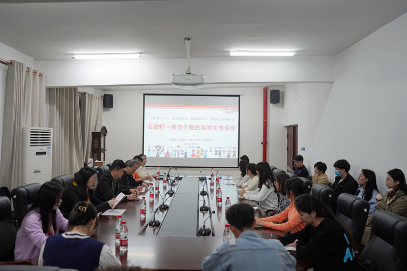 为进一步加强与少数民族学生的沟通和交流,全面了解我院少数民族学生学习和生活的情况,不断提升少数民族学生教育管理水平,3月13日,数学与统计学院在雁山校区理科楼举行了“喜迎二十大、永远跟党走、奋进新征程”主题教育实践活动之“石榴籽一家亲”少数民族学生座谈会,学院党委负责人、行政负责人、党委相关负责人、团委负责人、专职辅导员和少数民族学生代表参加座谈。