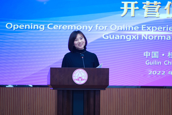 开营仪式上,广西师范大学国际合作与交流处处长/国际文化教育学院负责人表示,“云游桂林——精品实景汉语游学营” “中国传统文化与桂林地域文化体验营”是广西师范大学第二次面向越南学生开展的汉语桥线上体验营项目。广西师范大学十分重视该项目的开展,组织骨干教师更新与完善了课程。“云游桂林——精品实景汉语游学营”带领同学们参观广西师范大学、游览桂林、品鉴中国文化、品尝桂林美食,在游学中学习汉语,感受和体验中国文化的魅力。“中国传统文化与桂林地域文化体验营”将中国文化与桂林地域文化巧妙融合,带领同学们深入学习中国传统文化,体验桂林地域风情。