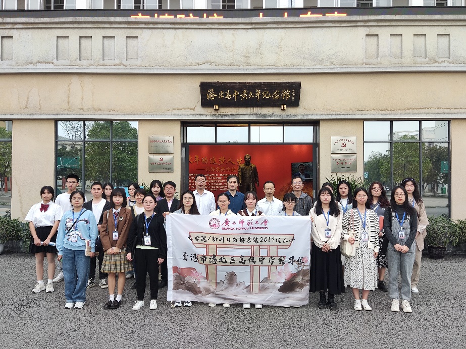 为深入了解学习黄大年同志的先进事迹,认真贯彻黄大年“心有大我,至诚报国”的爱国情怀,更好地发挥文学院/新闻与传播学院“黄大年式教师团队”在中华优秀传统文化继承与发扬中的作用,3月15日,学院负责人带领部分“黄大年式教师团队”成员赴贵港黄大年的母校港北高中黄大年纪念馆参观,贵港港北高中覃秋明校长陪同参观,学院2019级港北高中实习组的19位实习老师参加了此次活动。