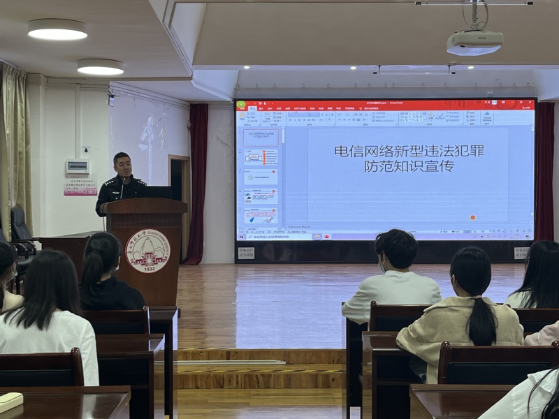 派出所所长开展防诈宣讲,指出电信网络诈骗犯罪组织性极强,涉案财产往往难以追回,极易对人民生命群众财产造成不可逆的伤害。为有效对抗电信网络诈骗,让诈骗分子无处遁形,师生们需要一“知”二“防”。反“诈”必先知“炸”。目前,电信诈骗多现于“冒充公检法”、“杀猪盘”、“刷单”、“网络平台投资”、“网络贷款”、“冒充商家客服”等形式。犯罪分子依靠技术手段,掌握被害人大量信息,使得被害人放松警惕、陷入犯罪分子精心设计的圈套。防“炸”以自我为先。个人信息泄露与贩卖等现象已经成为诈骗黑色产业链中的重要部分。师生们要把保护好个人信息作为预防诈骗的第一道窗口,在陌生人提供的信息与个人真实信息高度重合的情况下,及时向相关专业机构确认或向警方求助,切勿轻信陌生信息。除了妥善保管信息,师生还要加强自我账户安全管理,提高金融风险意识,培养良好的支付习惯等,坚决不参与租售、购买银行卡、手机卡等犯罪行为。