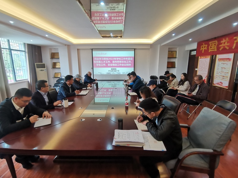 3月21日,基建处在行政南楼101会议室召开会议,学习传达传达学校党委人才工作、宣传思想文化工作、学生工作、安全稳定工作等会议精神。基建处全体成员参加会议,会议由基建处主要负责人主持。