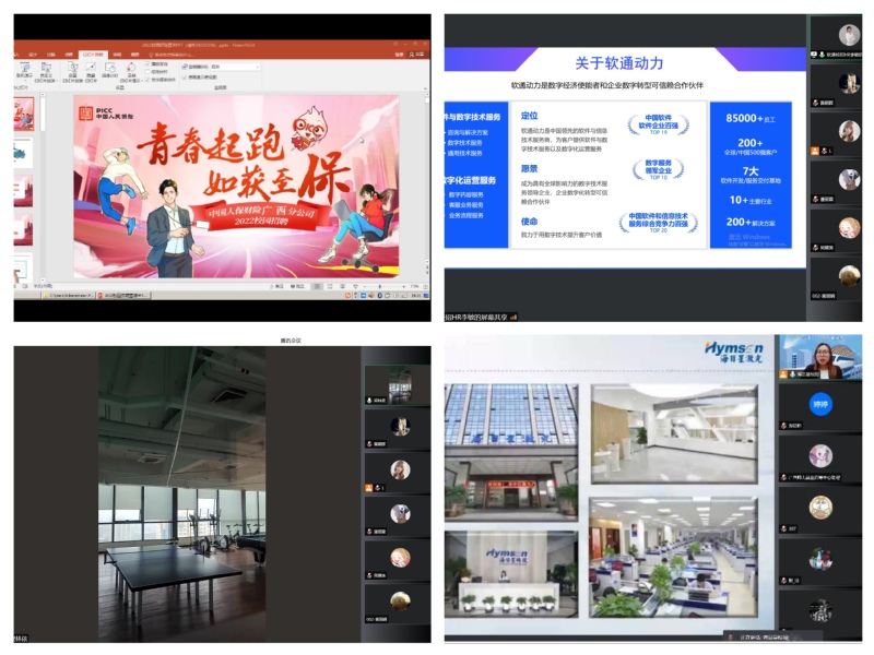 3月18日-3月24日期间,中国人民保险广西分公司、软通动力、深圳海目星激光智能装备股份有限公司先后通过“云宣讲”实现了“云招聘”。在宣讲会上,各单位首先对公司整体概况、就业岗位基本需求、面试流程、员工职业发展通道、公司福利等方面进行介绍,随后,同学们还针对普遍关心的未来发展渠道、薪酬福利、晋升机制等问题与用人单位进行了互动交流。