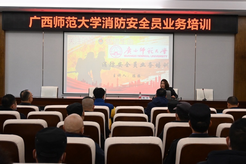 为深入推进平安校园建设,进一步提升学校消防安全管理水平,为90周年校庆营造更加绿色安全稳定的校园环境,3月24日,我校在雁山校区开展消防安全员业务培训,本次活动邀请了雁山消防救援大队工程师、消防专业培训师进行授课,保卫处、图书馆、物业、食堂、学生公寓等单位部门50名消防安全员参加了培训。