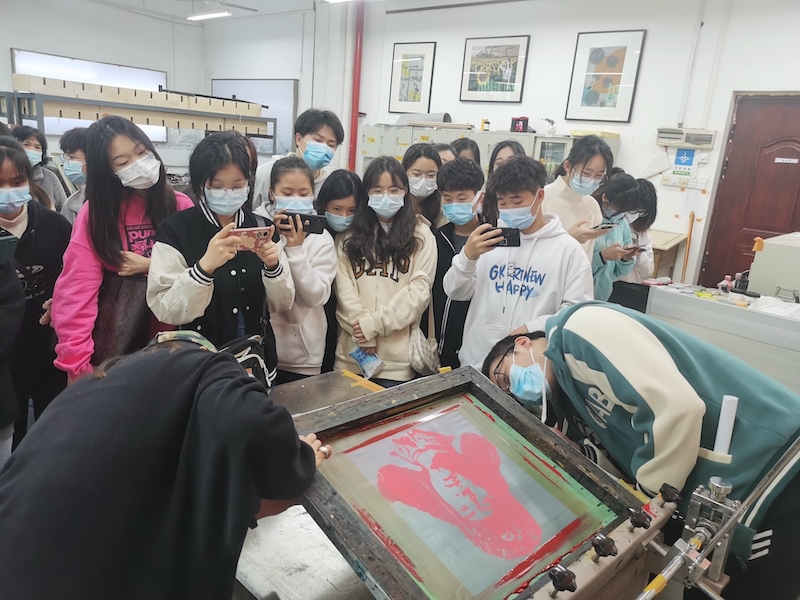 美术学院青马班学员在学雷锋活动的热潮下,充分发挥专业特色践行雷锋精神。活动前期,学院青马班学员以小组协助探究形式,利用课后时间通过视频、丝网版画黑白图片等方式深入学习雷锋精神,让雷锋精神入脑入心入行。活动当天,刘素萍老师为学院青马班学员分享了自己学习丝网版画的经历,让同学们切身体会到丝网版画的魅力,并鼓励学员们要结合专业特长来弘扬和传承雷锋精神,让雷锋精神与时代同行同辉。随后,青马班学员们通过理论自学及在老师实践指导下现场创作了以雷锋为主题的丝网版画,让学雷锋主题教育更加生动鲜活,传递着新时代的青春正能量!