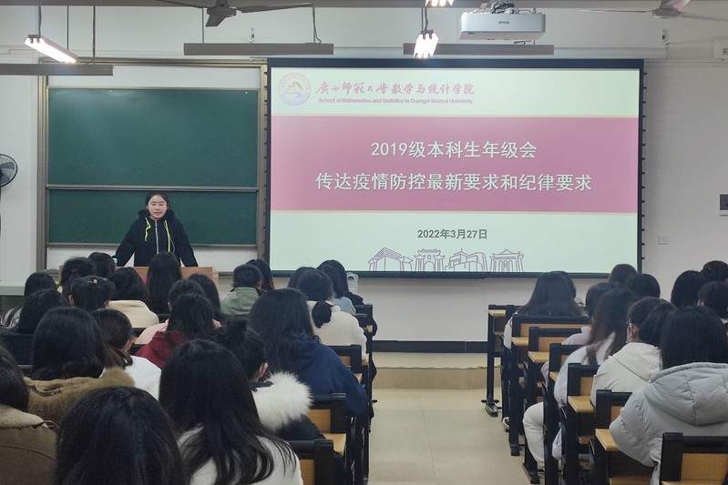 为贯彻落实学校关于疫情防控工作的最新精神和要求,进一步严明纪律,强化警示教育,3月27日,数学与统计学院各年级召开线上、线下年级会,传达学校关于疫情防控工作的最新要求,并通报近期高校发生的违反疫情防控政策的警示案例,以案明纪。