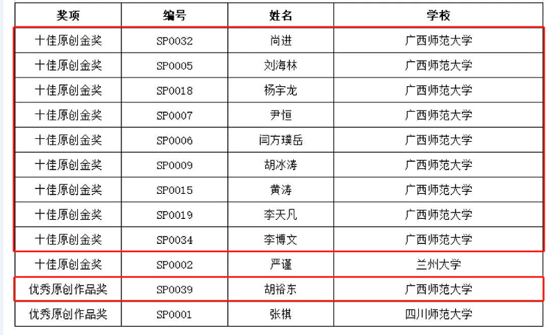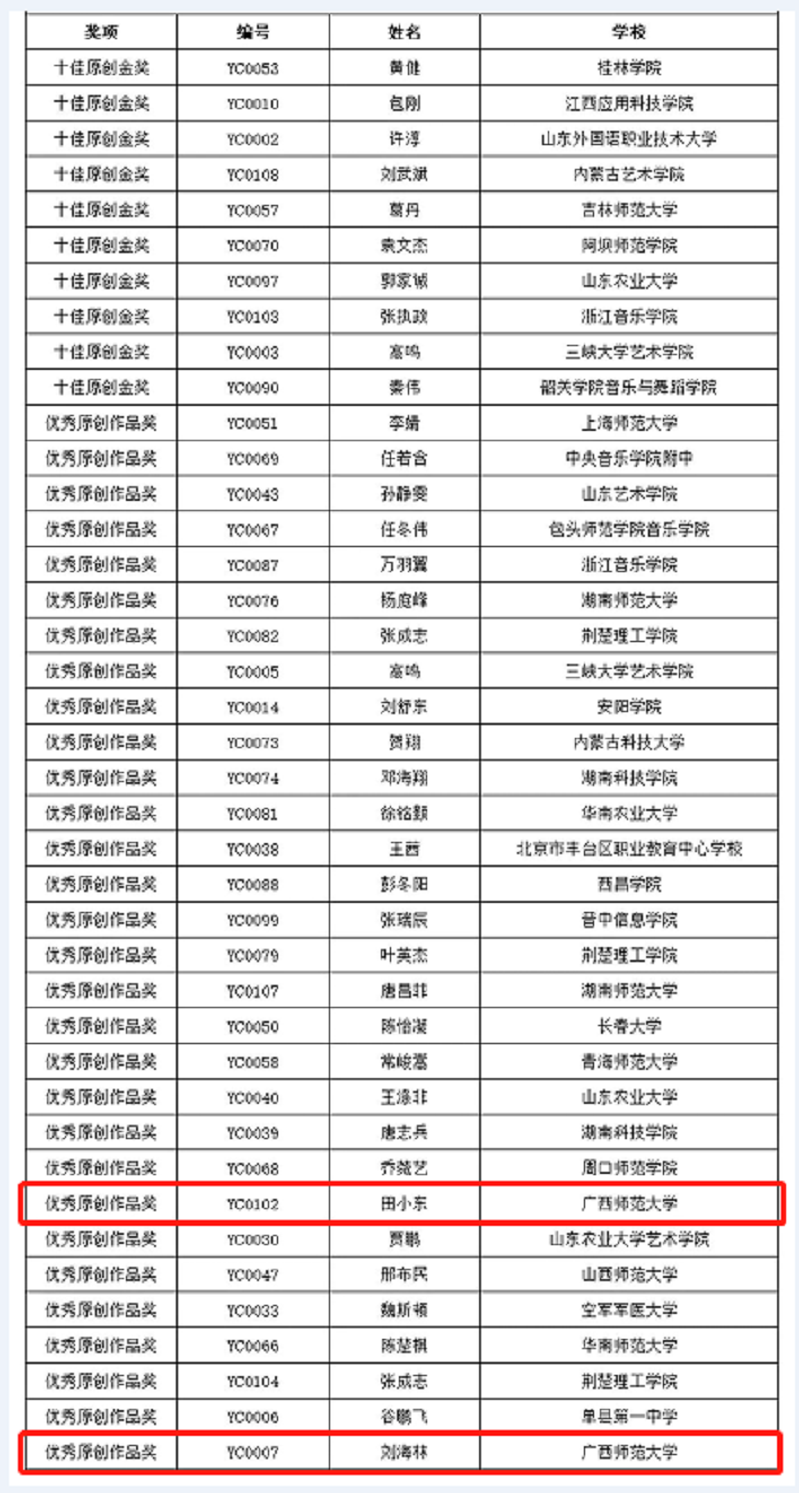 原创音乐组获奖名单