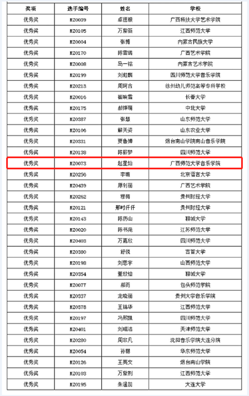 民族学生组获优秀奖名单