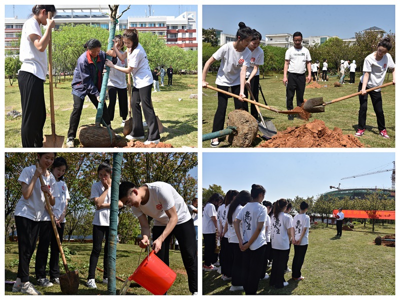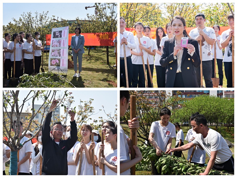 授课过程中,物业服务中心相关负责老师围绕劳动安全要求、植物学原理为同学们进行理论部分讲解,从种植、修剪、施肥等方面进行实际操作展示,并布置后期养护课程作业。教学班的60名学生分组劳动、井然有序,用铁锹、铲子等工具共同配合完成了20余株樱花树木的种植。
