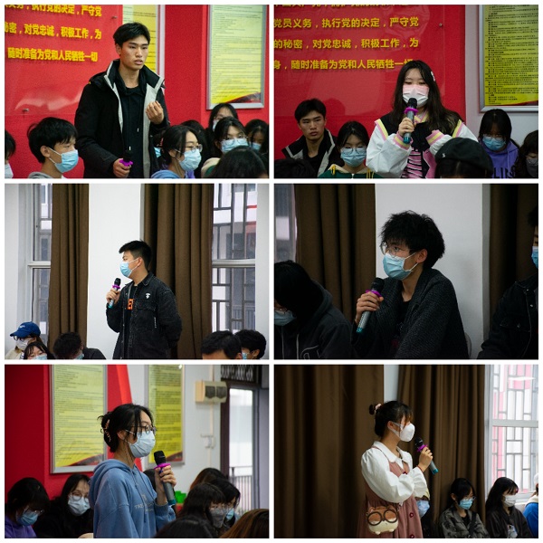 关于学风建设,老师们提出了“怎样建设优良学风”的问题,同学们积极发言,纷纷提出了自己的观点,并形成共识:建设优良学风学生是主体,老师是主导;大学生首先应该确定目标,然后才有努力的方向,老师在其中起引导作用;通过交流,从灌输式的教学转变为引导式,让同学们学会创新,学会自主学习,拒绝“躺平”。