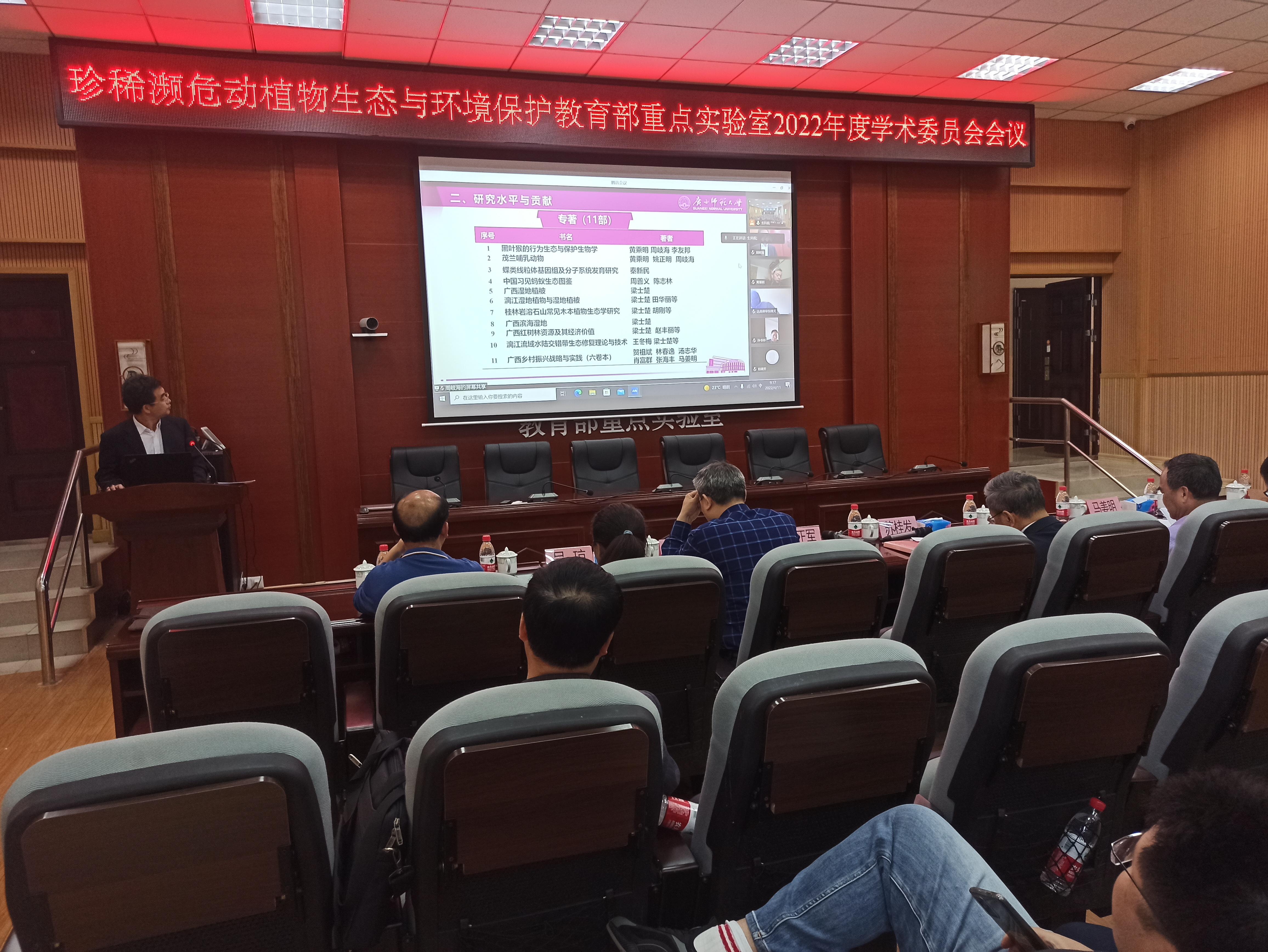 4月11日,珍稀濒危动植物生态与环境保护教育部重点实验室2022年度学术委员会会议雁山校区伯康楼112学术报告厅召开,会议线上线下同步进行。重点实验室学术委员会主任桂建芳院士等专家委员、苏桂发副校长、科技处相关负责人、生命科学学院领导班子、重点实验室室务委员会成员和学术骨干等70余人出席会议。因疫情原因,学术委员会委员均为线上参会。