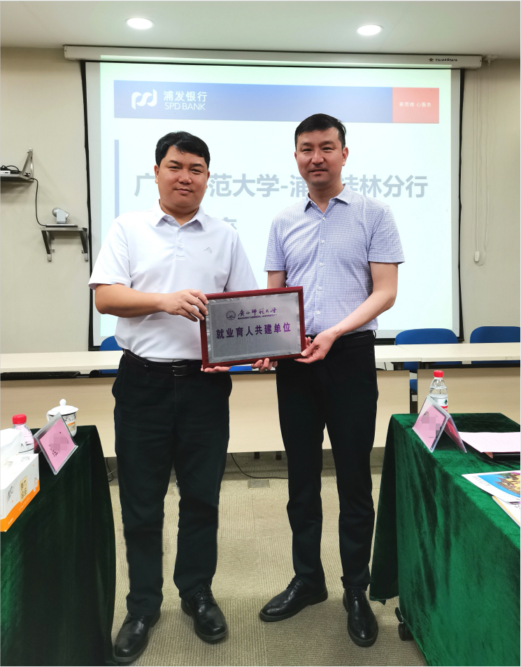 会上,李英利为浦发银行桂林分行授予“广西师范大学就业育人共建单位”牌匾。双方就下一步开展项目合作、学生实习实训、社会公益扶持等方面达成了一定共识。在走访看望校友时李英利转达了邓军书记、贺祖斌校长对校友们的问候。他指出,校友是学校靓丽的名片,是学校宝贵的资源,广大校友们秉承“尊师重道、敬业乐群”的校训精神,在各自的岗位上取得了非凡的业绩,赢得了社会各界的广泛认可,成为母校的光荣和骄傲。