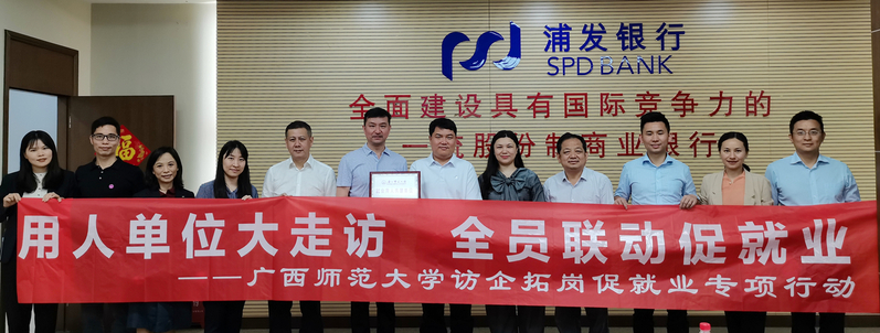 为贯彻落实党中央、国务院关于高校毕业生就业工作的决策部署,深入落实高校毕业生就业工作,加快健全高校毕业生市场化社会化的就业创业工作机制。4月11日,校党委常委、总会计师李英利带队赴浦发银行桂林分行走访调研并座谈交流。双方就深化校企合作、人才培养、拓宽就业渠道、拓展就业岗位、开展实习实训、加强就业指导等多方面进行深入交流,同时还走访看望了在浦发银行桂林分行工作的校友。