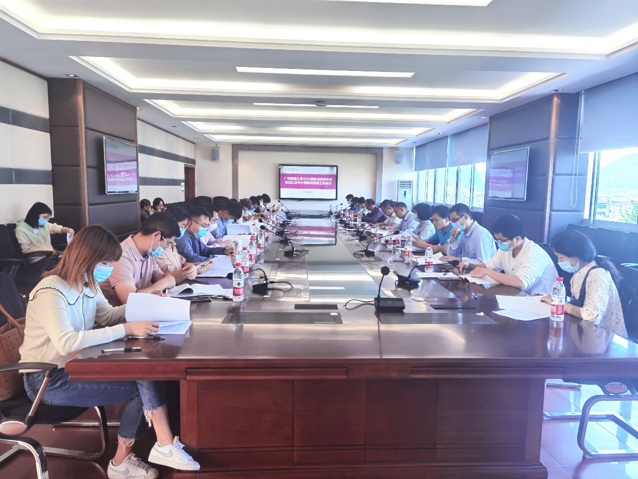 会上,研究生院分管研究生培养工作的负责人解读了《关于报送《广西师范大学师范生和教育类研究生教育教学能力考核办法(试行)》的报告》(师政报〔2022〕42号)的文件精神和工作要求,对我校2022届教育类研究生免试认定中小学教师资格工作进行了全面布置,要求各教育类研究生培养单位认真做好本次免试认定工作的报名、资格审核、笔试、培养过程性考核及数据上报等工作,确保我校2022届教育类研究生免试认定中小学教师资格工作顺利完成。培养办负责老师对2022年3月份以来我校2022届教育类研究生免试认定中小学教师资格工作的报名、资格审核工作情况进行了汇报,并对与会人员提出的问题,进行了及时的解答。