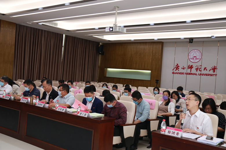 4月14日,我校在雁山校区举行2021年学院(部)团委年度工作考核暨2022年“五四”评优展评会。校党委副书记旷永青出席会议,党办/督查办、组织部、宣传部、学工部(处)、研工部、校团委、教师工作部/人事处等单位负责人及各学院(部)党委副书记,团委书记、副书记参加会议。会议由校团委主要负责人主持。