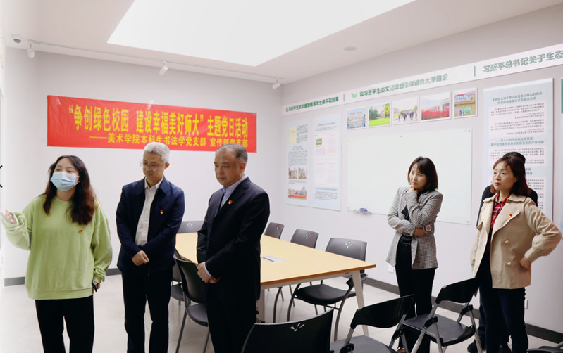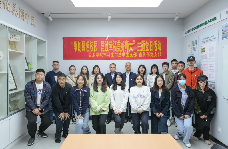 同日,党支部联合美术学院本科生书法学党支部共同开展“争创绿色校园,建设幸福美好师大”主题党日活动,支部全体党员共同参观了学校绿色校园科普宣传教育基地,进一步研究制定了支部关于绿色校园及幸福美好师大建设的思路、举措。