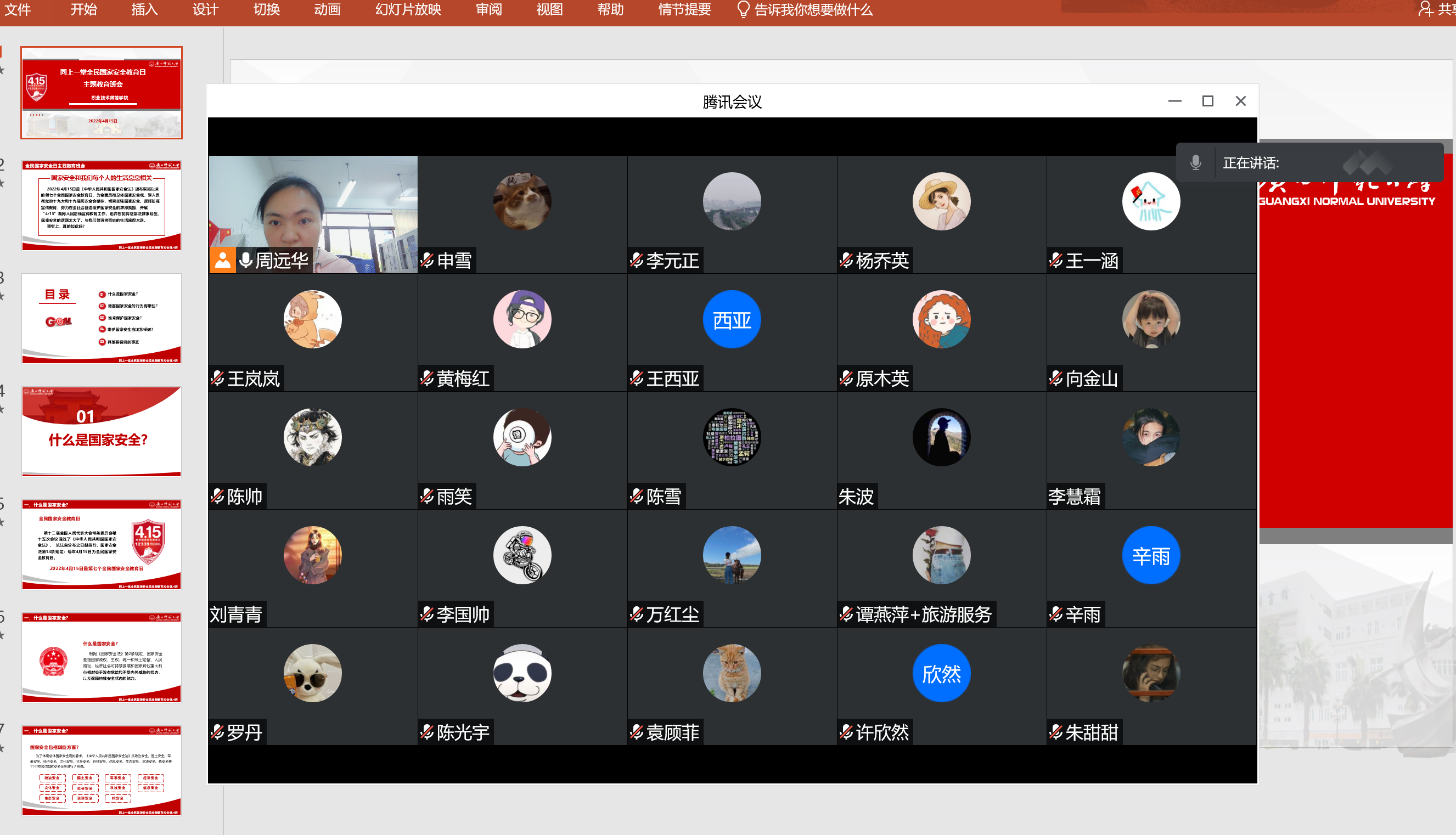 学院全体本科生和硕士研究生以主题班会的形式,在4月14日-16日通过线上线下相结合的形式开展了“同上一堂国家安全日主题教育班会”活动。各学生党支部也于4月17日以线下形式举行了国家安全教育主题党日活动,此外,全体成员还集中观看了《维护国家安全我们不是局外人》的学习视频。