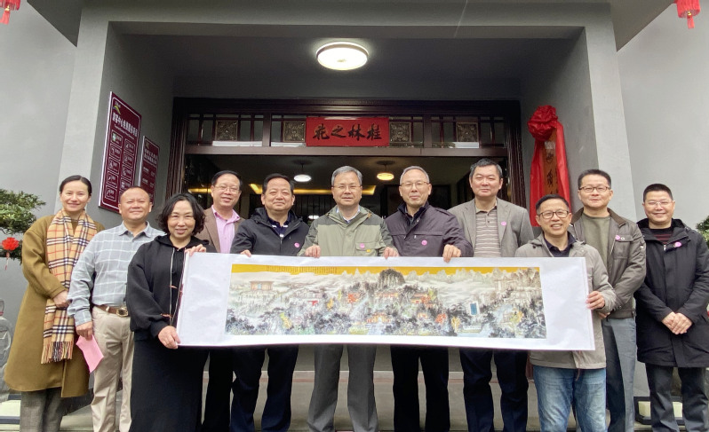 苏桂发副校长向独秀之家·桂林(四海园林)赠送《独秀·育才·雁山盛景图》文创仿真画