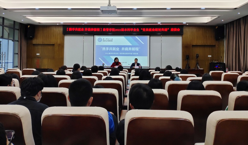 为进一步加强分类就业指导,加大对重点群体就业精准帮扶力度,促进形成“学生党员带头抓就业、已就业学生帮助促就业、升学学生齐心推就业”的工作格局,实现毕业生更充分更高质量就业,4月15日,政管学院在起文楼第五会议室召开2022届本科毕业生“党员就业结对共进计划”座谈会,学院党委主要负责人,学院党委相关负责人、2018级本科生辅导员,2018级就业信息员以及全体学生党员参加会议。