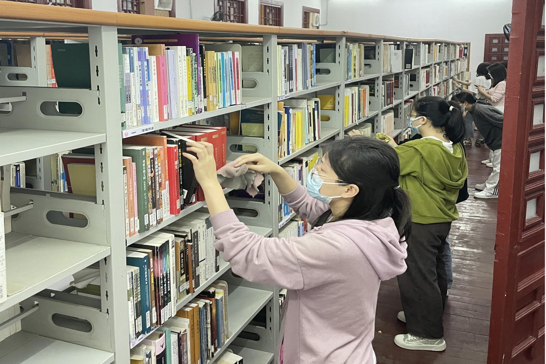 志愿者们清扫书架