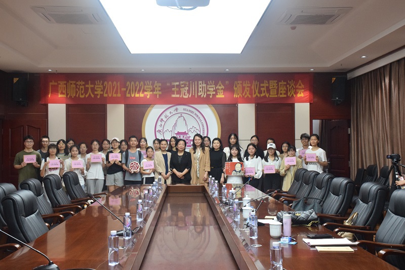 4月25日,我校在育才校区国教中心2号楼211会议室举行2021-2022学年“王冠川助学金”颁发仪式暨座谈会。王冠川先生委托代表人、我校教育学部王枬教授,学工部(处)、教育发展基金会单位负责人,各学院(部)受助学生代表参加颁发仪式。