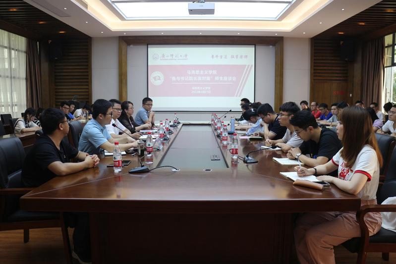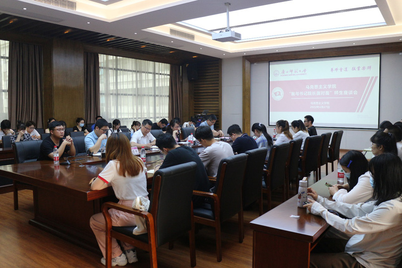 为深入学习贯彻习近平总书记在中国人民大学视察时的重要讲话精神,加强学院与师生沟通、老师与学生交流、推动建强建优全国重点马院。4月27日,在五四青年节来临之际,马克思主义学院在雁山校区起文楼第四会议室举行“我与书记·院长面对面”师生座谈会。学院党政主要负责人、相关负责同志、全体专兼职辅导员、各年级年级长、团支部书记、班长参加座谈。座谈会由学院党委主要负责人主持。
