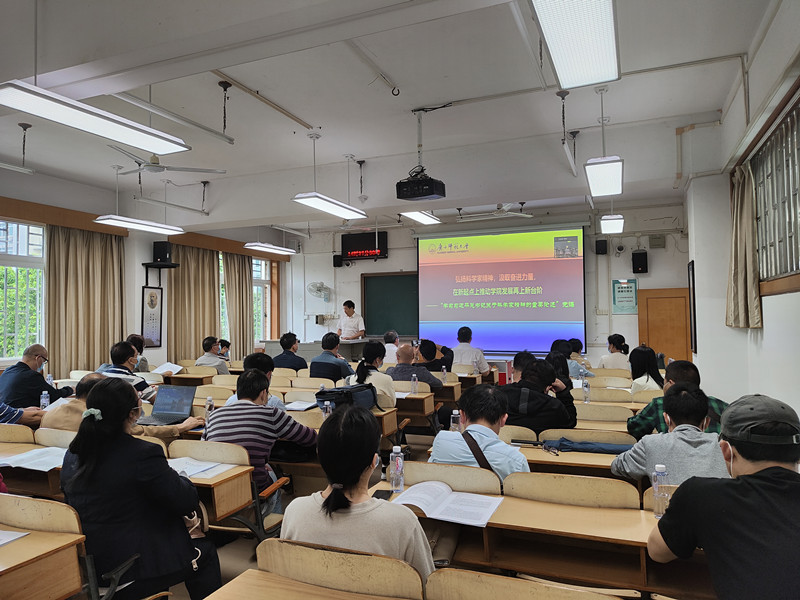 4月29日,数学与统计学院“学习习近平总书记关于科学家精神的重要论述”专题党课在育才校区理科楼举行,副校长黄文韬以《弘扬科学家精神,汲取奋进力量,在新起点上推动学院发展再上新台阶》为题,为数学与统计学院教师讲授专题党课。