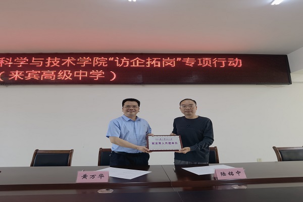 在来宾高中,校长陆铭中对我校的办学水平和人才培养质量给予充分肯定。双方围绕如何从人才需求实际出发,提升毕业生就业质量,落实立德树人根本任务进行了深入探讨,并就共建师范生教育实习基地、人才招聘等进行了沟通交流,形成了双方要开展多层面交流,拓展毕业生就业渠道、促进人才培养,建立并深化长期、稳定、全面、深度的合作关系,加强教学成果培育、学科培训、课题研究合作等方面的共识。