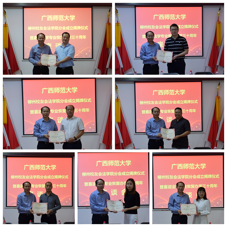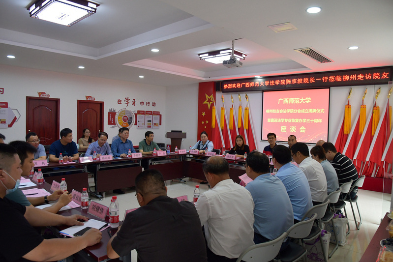 座谈会后,学院领导班子与柳州校友会法学院分会首届理事会举行了揭牌仪式,并与参会校友代表合影留念。