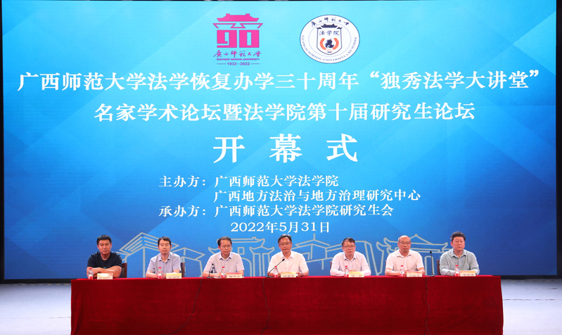 5月31日,法学恢复办学三十周年“独秀法学大讲堂”名家学术论坛暨法学院第十届研究生论坛于雁山校区音乐楼三楼综合厅正式开幕。本届论坛采取“线上+线下”相结合的方式全程直播,论坛首日广大师生、校友及同仁门有一千五百余人在线观看。
