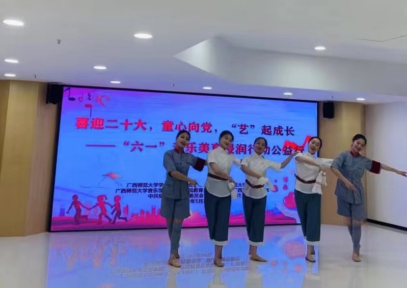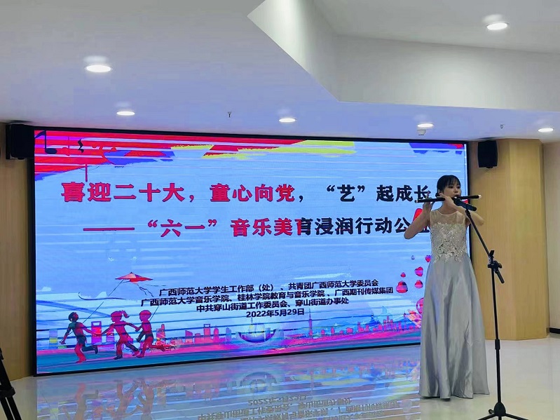 “六一”儿童节到来之际,音乐学院联合桂林学院教育与音乐学院、广西期刊传媒集团、穿山街道办事处共同开展“喜迎二十大,童心向党,‘艺’起成长”美育浸润实践行动。