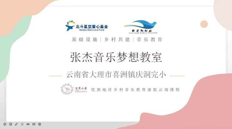 在“六一”国际儿童节到来之际,为帮助山区小学提升素质教育,深化美育教育改革,赋能乡村振兴战略,促进山区儿童德、智、体、美、劳全面发展,百灵鸟公益团队创新在线支教服务形式,推出“百变小莺”虚拟云端课程,联合张杰音乐梦想教室,“云”支教守护山区孩子的音乐梦想,助力云南省大理市喜洲镇庆洞完小的孩子们健康快乐成长。