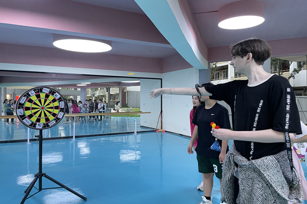 此次活动有五个部分,分别是DIY艾草香囊、编织五彩手绳、射箭祈福、投壶、“你划我猜”,其中最受大家喜爱的是DIY艾草香囊。在制作环节,中国学生分步骤给留学生、外教做了详细示范,大家认真观察学习,随后,将端午的美好祝愿,通过一针一线,缝进五颜六色的香囊里。来自东帝汶的吉利说:“学校给我们提供的中国传统文化体验活动很精彩,我们亲手制作了香囊,是一名真正的师大“绣才”。”