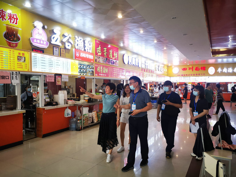本次督查,主要针对师生反映的诸多问题进行深入排查,重点对校内各门面、食堂各窗口、引进的社会餐饮企业及档口的门面资质、商品标识、食品安全管理、超范围经营、商品价格、卫生保洁、疫情防控、人员健康管理、消防安全、门前三包、跨门槛经营等方面问题进行真督实查,严守食品安全底线,全力保障师生饮食安全。