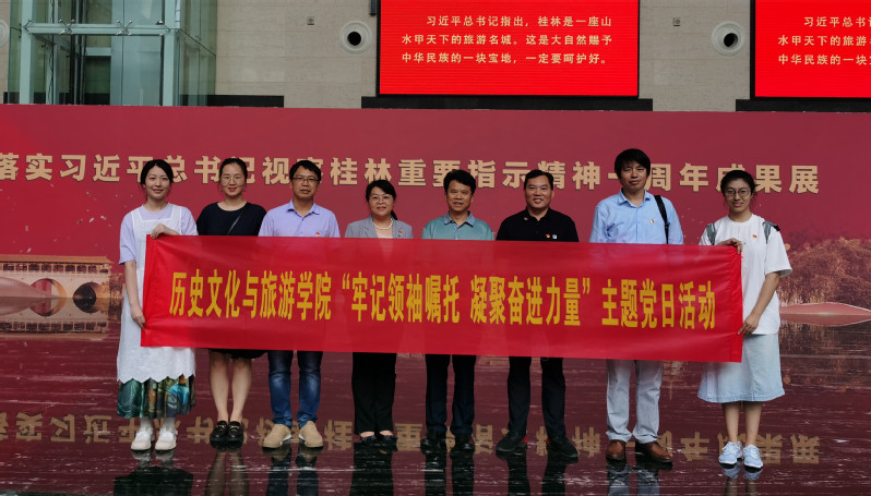 为深入贯彻落实习近平总书记视察广西“4·27”重要讲话和重要指示精神,进一步推进党史学习教育常态化长效化,6月8日,历史文化与旅游学院党委与桂林博物馆党支部联学共建开展“牢记领袖嘱托 凝聚奋进力量”主题党日活动,参观《贯彻落实习近平总书记视察桂林重要指示精神一周年成果展》,对习近平总书记重要指示精神再学习、再领会,牢记重托,感恩奋进,以优异成绩迎接党的二十大胜利召开。