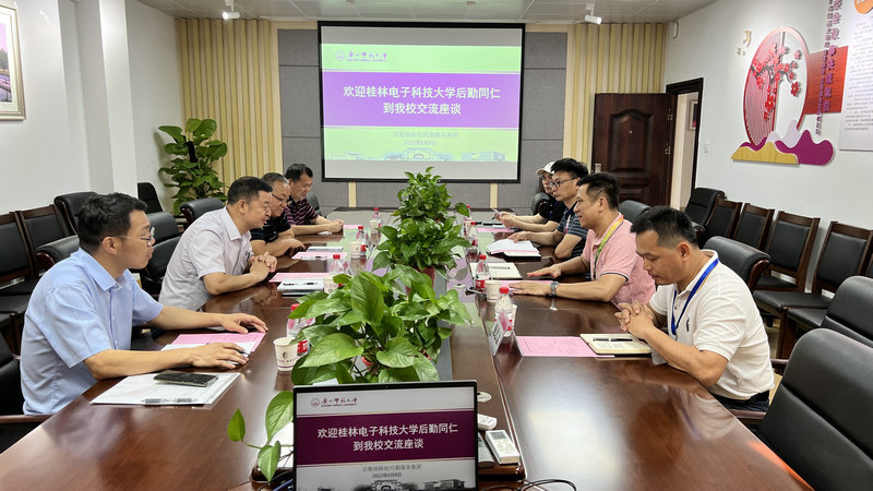 桂林电子科技大学后勤处主要负责人简要介绍了此行的目的及学校后勤相关工作开展情况。双方就后勤智慧化建设、节能减排管理、直饮水建设、维修工程管理等工作进行了深入交流。