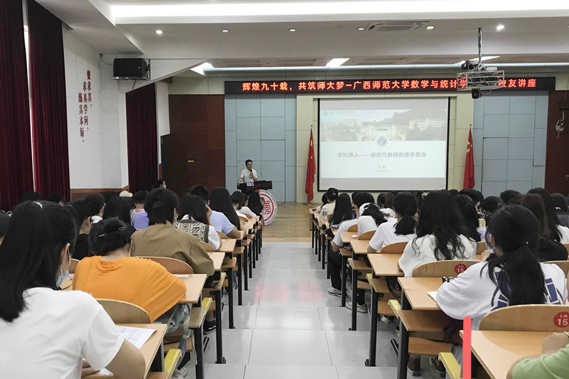 6月10日,数学与应用数学专业2003级毕业生,现为桂林市首附实验中学高中数学教师、副校长韦刚老师应邀为全校师生作题为“学科育人——新时代教师的使命担当”的讲座。