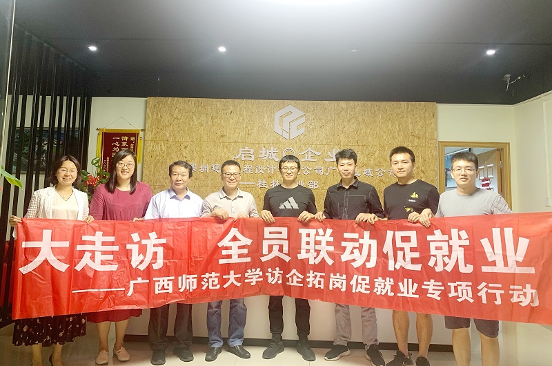 为全面贯彻落实党中央、国务院关于高校毕业生就业工作的决策部署,千方百计开拓更多就业创业岗位和机会,深入落实就业工作“一把手”工程,6月16日,环境与资源学院党委负责人率队赴七星区创意产业园、桂林启城建筑设计工程有限公司、广西金天环境工程有限责任公司开展走访企业谈合作工作,促进学院学生高质量就业。