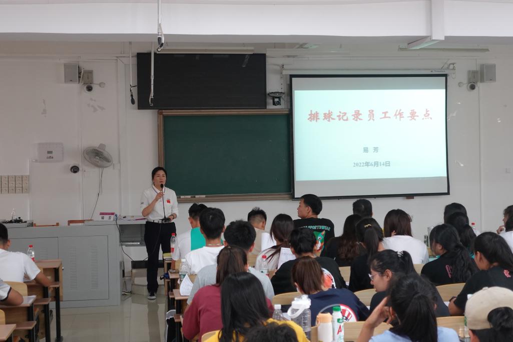 为进一步加强全区学校排球裁判队伍建设,不断提高全区学校排球裁判员业务水平和综合素质,6月13日-15日,由广西排球协会、广西学校体育卫生艺术学会主办,体育与健康学院承办的2022年全区排球一级裁判员培训班在我校成功举办,开班仪式于13日下午在体育楼503会议室举行,出席开班仪式的领导及嘉宾有广西排球协会主席廖秀南、广西学校体育卫生艺术学会副会长谢翔、广西排球协会秘书长陈惠卿、副秘书长凌齐、体育与健康学院主要负责人,全体培训学员参加开班仪式。