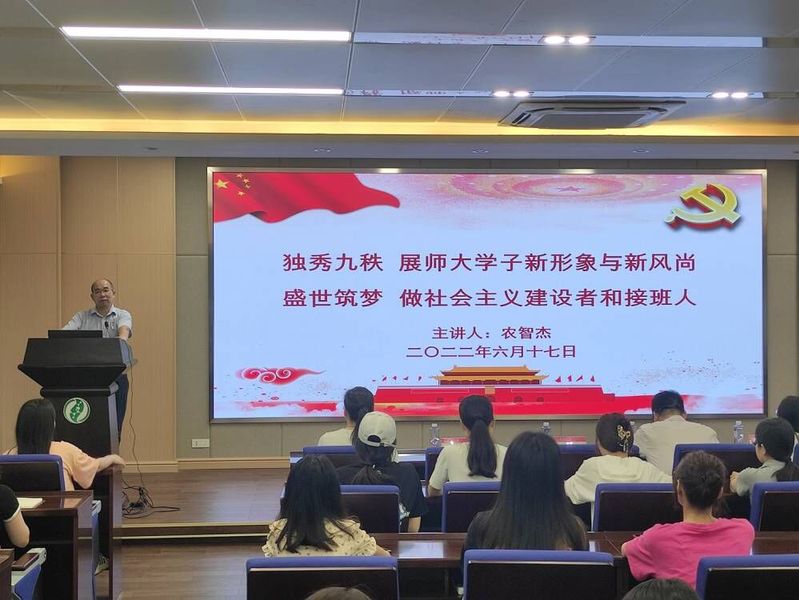 化学与药学学院党委负责人给毕业生党员带来主题为“独秀九秩,展师大学子新形象与新风尚;盛世筑梦,做社会主义建设者和接班人”的微党课。学院党委负责人结合学校90周年校庆,从“三四五”切题,以“三个为什么”、“四史教育”和“团员青年五个模范”为内容,深入浅出,层层递进分析阐述,希望各位毕业生党员走向社会后始终保持共产党员先进性,做一名合格的共产党员,继续发挥先锋模范作用、弘扬爱国奋斗精神、建功立业新时代。微党课结束后,全体党员起立,面向党旗,举右手握拳,由学院党委负责人领誓,重温入党誓词。毕业生党员们以铿锵有力的宣誓声,表达了作为一名党员,时刻不忘初心、矢志奋斗的决心以及坚定的政治信仰。