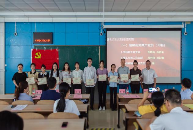 会上,党委负责人代表学院向受到表彰的集体和个人表示热烈祝贺,向全体党员致以节日问候,行政负责人宣读了获奖名单,二人共同为表彰集体和个人颁奖。受表彰代表结合各自的学习工作实际,用朴实的话语、生动的事例,表达了爱党的赤诚之情和持续奋斗的决心。