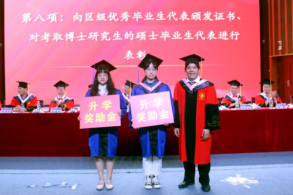 典礼为区级优秀毕业生颁发证书,为考取博士研究生的硕士毕业生颁发升学奖学金。