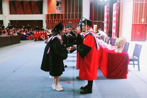 优秀本科毕业生代表陈诗怡同学和优秀硕士毕业生代表朱琳琳同学在典礼上发言。本科在校生代表李雨乔同学在发言中表达对毕业的师兄师姐们的诚挚祝福。
