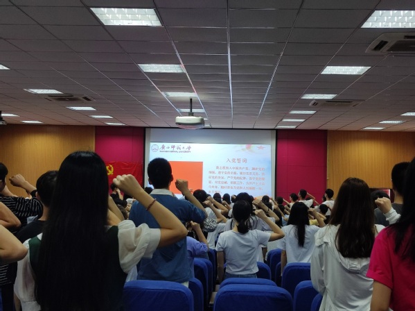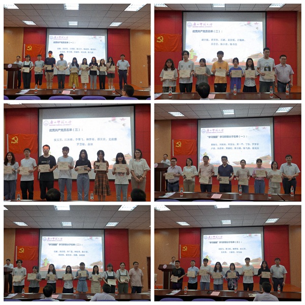 活动表彰了2021~2022学年度优秀学生党员27名、2022学年上半年“学习强国”学习积极分子28名。组织了2022年上半年新发展的48名党员入党宣誓暨党员干部重温入党誓词仪式。