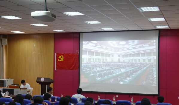 活动在雄壮的国歌声中展开。党员同志们以观看视频的形式,集中学习了习近平总书记在庆祝中国共产主义青年团成立100周年大会上的讲话精神。